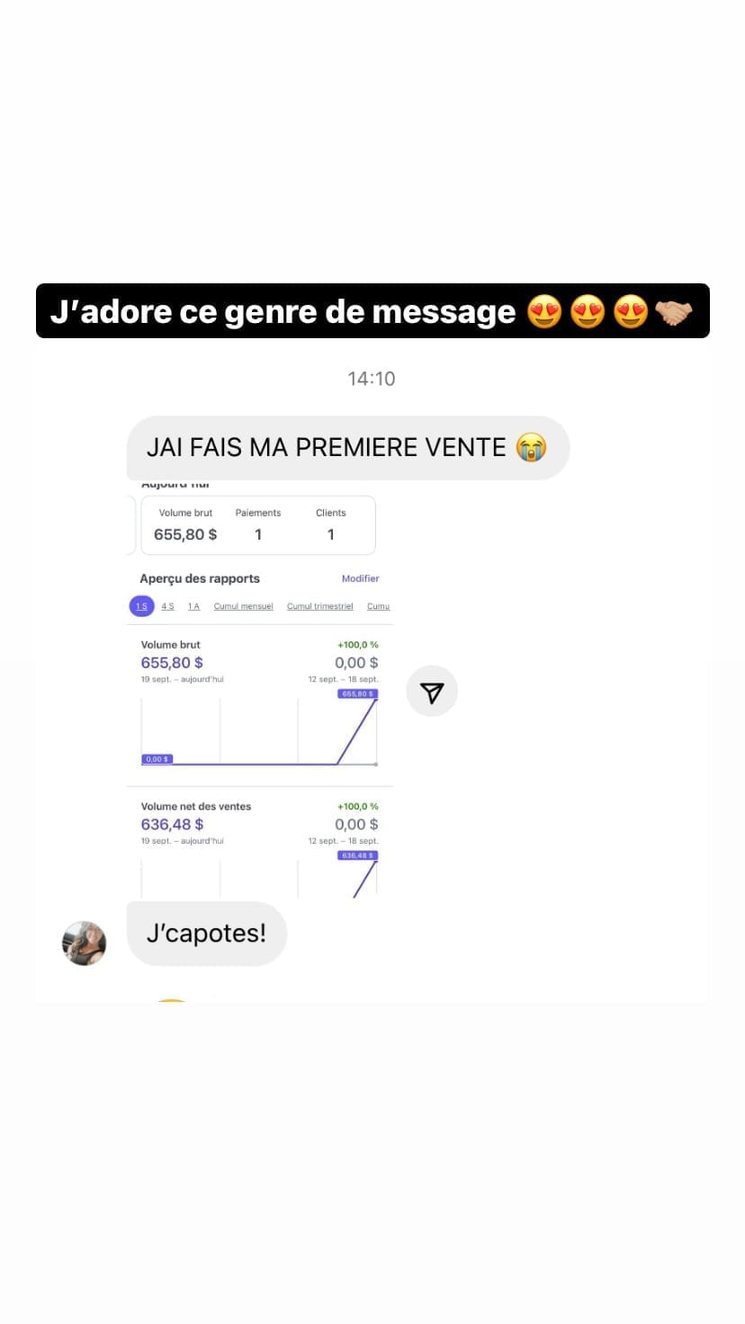 Si tu n'as pas d'idée de produit ou de service à vendre pour l'instant, tu peux donc utiliser ce cours et le revendre pour te générer une source de revenu en ligne et te créer une business. Avec seulement une vente, tu refais ton investissement de départ!!!